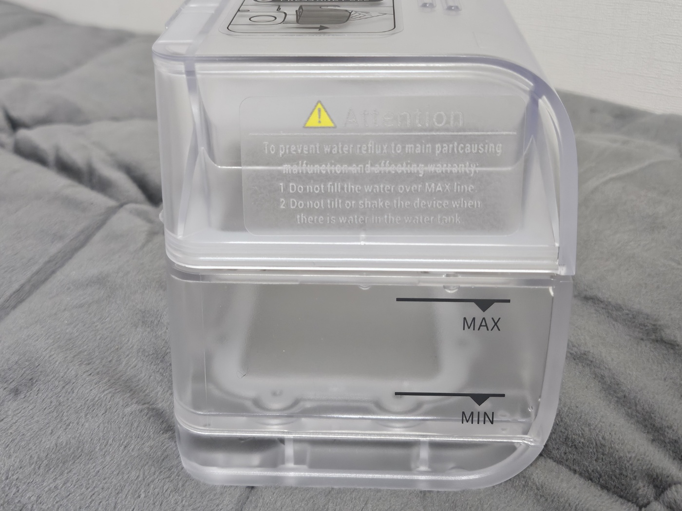 특히 양압기와 연결되는 물통의 공기통로 부분이 실리콘으로 되어 있어 더욱 위생적이고, 관리가 편한다는 느낌이었습니다.
