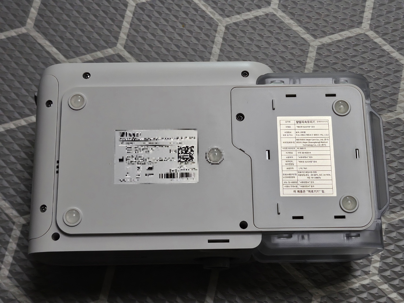 생각보다 양압기 사용하면서 꽤 중요한 부분인데, 많은 분들이 양압기 사용시 발생하는 진동 때문에 아래에 고무패드를 부착하거나 하는 경우가 적지 않더라구요.